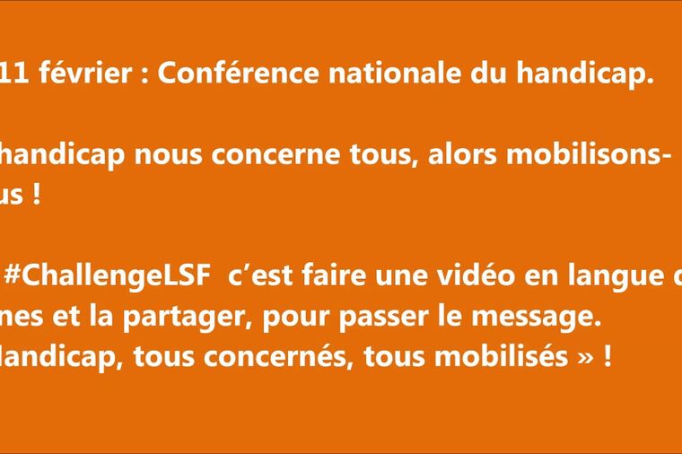 A quelques jours de la Conférence nationale du handicap (CNH) qui s'est tenu le mardi 11 février 2020, il a été proposé un challenge LSF sur les réseaux sociaux pour montrer notre soutien :